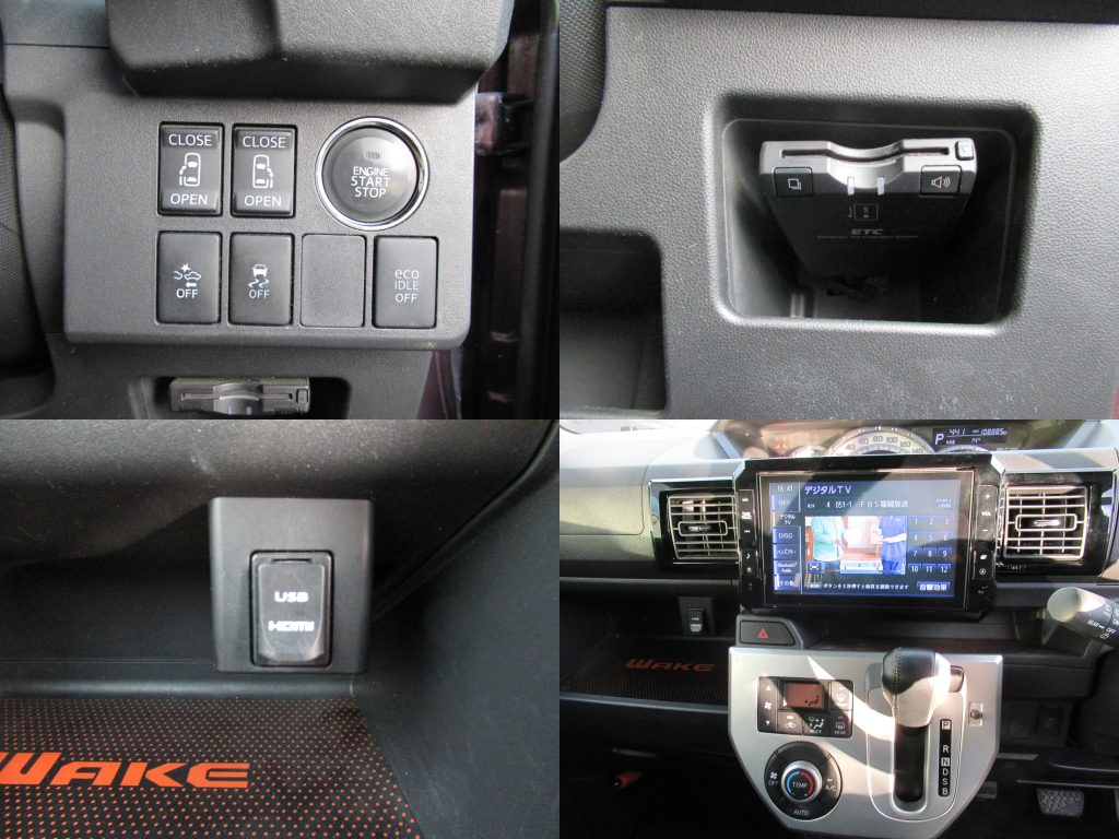 エアコン・ クーラー, パワステ, パワーウィンドウ, プッシュスタート, スマートキー, ETC, カーナビ:その他, テレビ:フルセグ, Bluetooth接続, 後席モニター, 電動スライドドア:両側, エアバッグ:運転席助手席, カメラ:バック, ドライブレコーダー, ABS, 盗難防止装置, ヘッドライト:LED, アルミホイール:純正